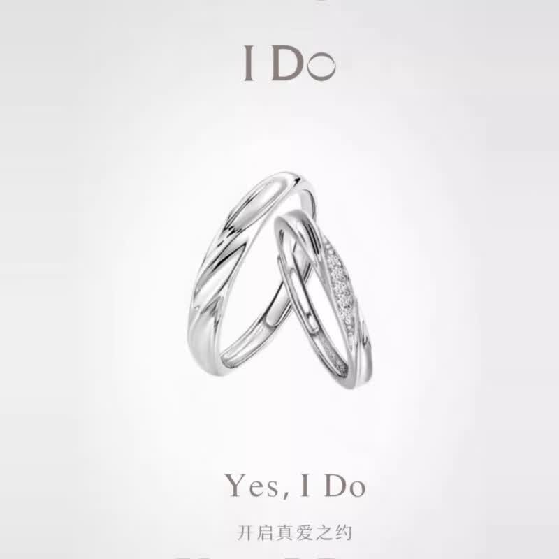 I Do 铂金PT950钻石情侣对戒共渡爱河戒指结婚纪念日生日七夕礼物 铂金对戒一对开_口可调节