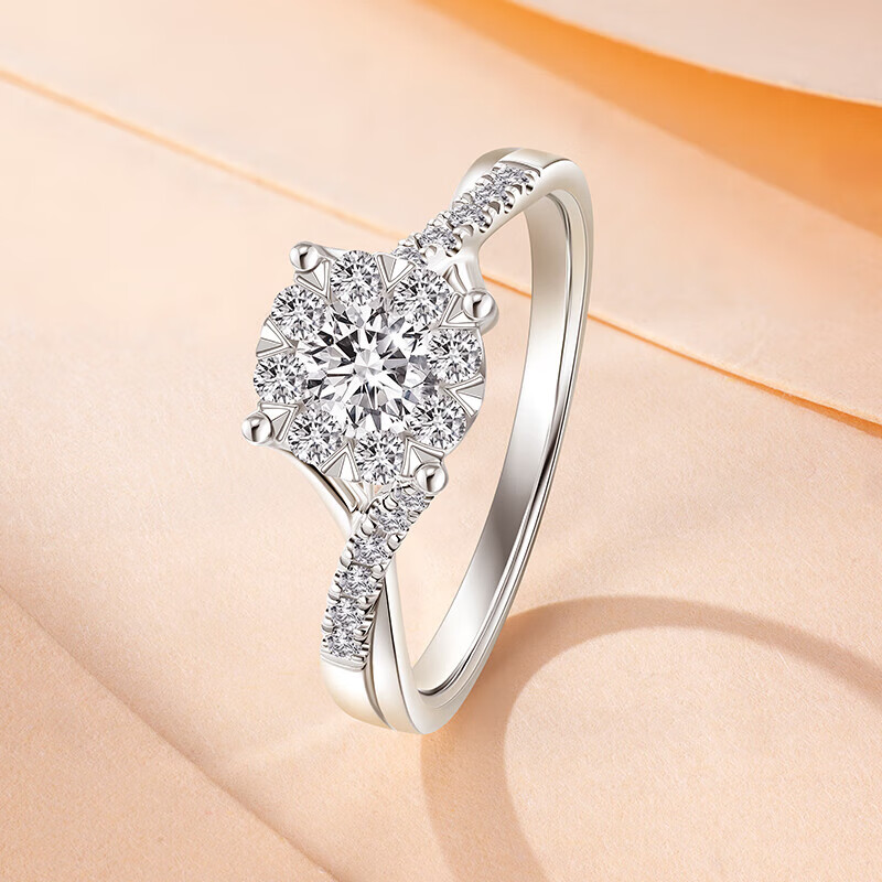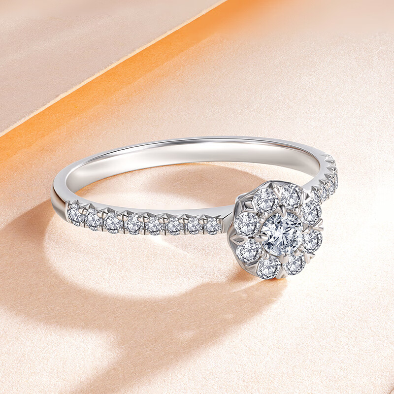 CRD克徕帝【现货闪发】花约钻戒女求婚结婚订婚钻石戒指群镶女戒【臻选】PT950铂金钻戒共约30分