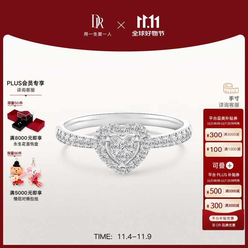 DR现货DR之心求婚钻戒 DR HEART简奢款铂金钻石戒指七夕礼物 【共约22分】现货闪发