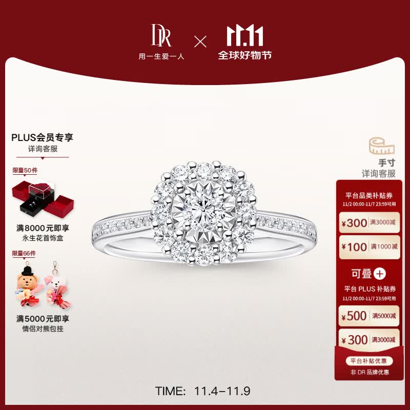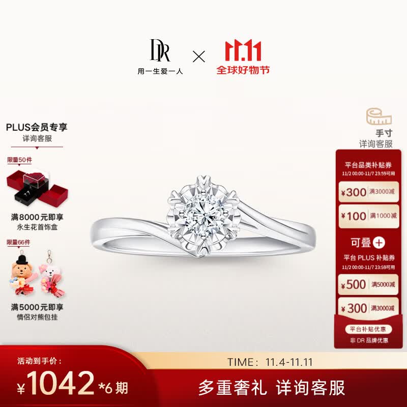 DR现货初雪之吻求婚钻戒K金/铂金BELIEVE经典款 结婚戒指七夕礼物 TOP*10分G色VS2【少量现货】