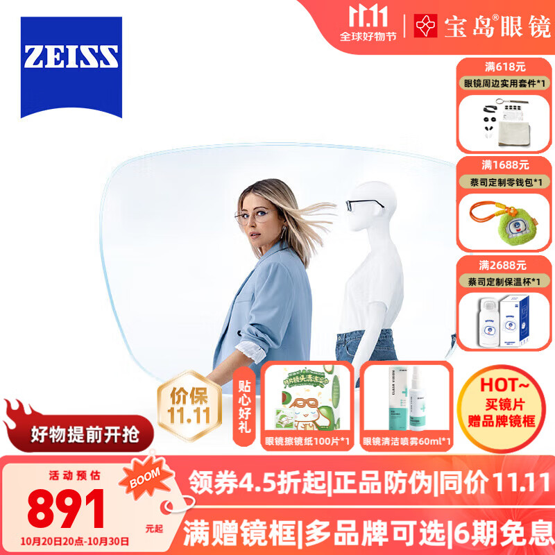 蔡司(ZEISS)泽锐镜片2片 泽锐钻立方防蓝光铂金膜绿晶膜 近视眼镜线上配镜片 泽锐钻立方铂金膜 1.60折射率(建议0-600度)