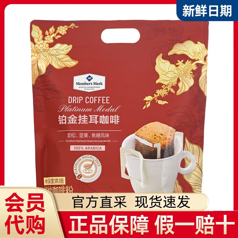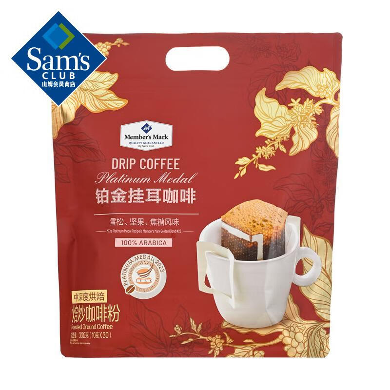 Member's Mark山姆铂金挂耳咖啡纯咖啡粉饮品免煮 挂耳咖啡 整包装300g保质期到2026年9月