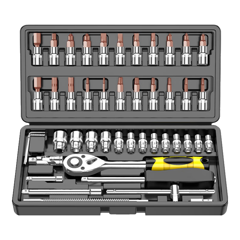 华麦斯汽修工具套装家用套筒扳手小车棘轮扳手工具箱专业级五金汽保工具 战神工具46件套(升级加强版)