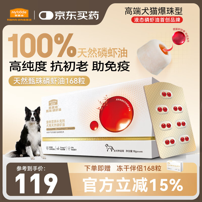 麦富迪狗狗磷虾油 浓缩甄珠磷虾油狗狗防掉毛卵磷脂护肤美毛168粒
