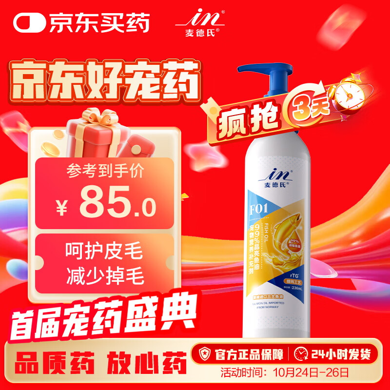 麦德氏IN狗狗99%晶亮鱼油236ml(大规格)宠物狗狗猫咪鱼油美毛亮毛