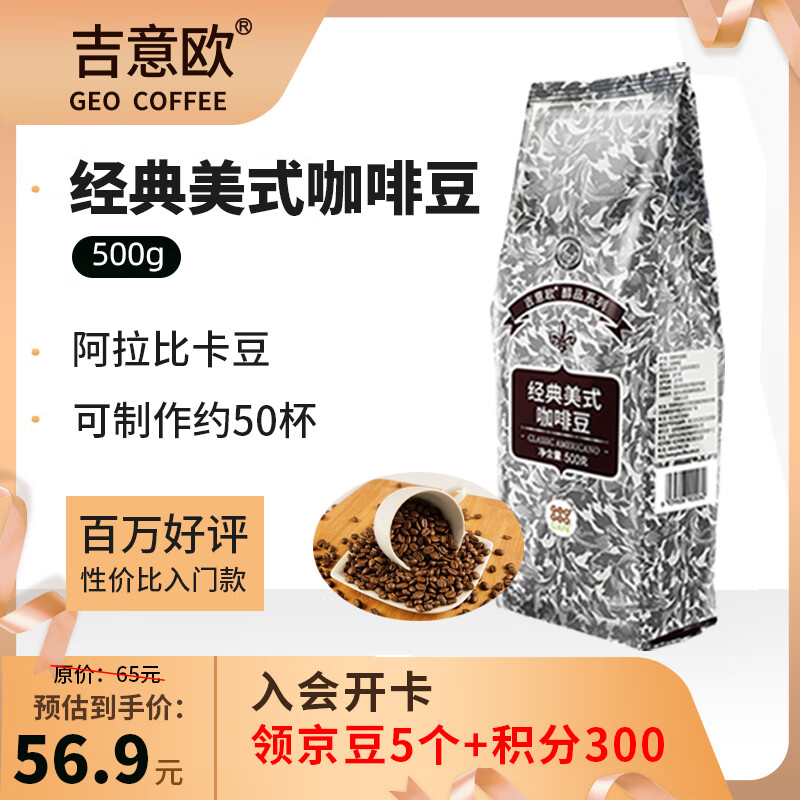 吉意欧GEO醇品经典美式咖啡豆500g阿拉比卡豆中深烘美式醇香黑咖啡