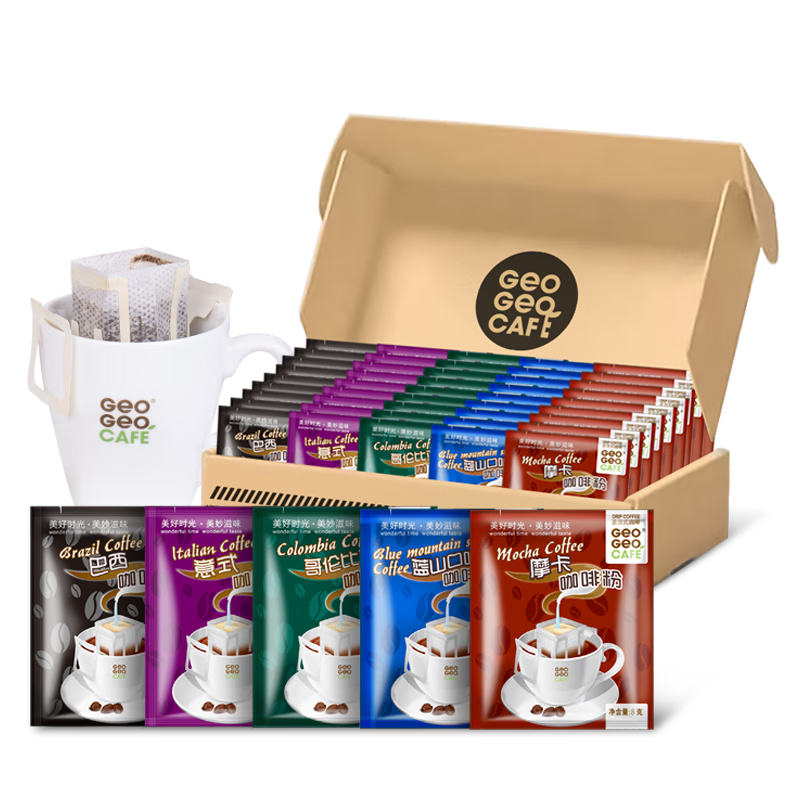 吉意欧混合装挂耳咖啡400g50杯黑咖啡豆粉蓝山意式巴西手冲阿拉比卡便携