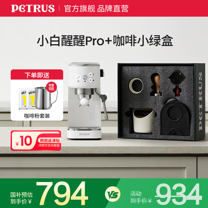 柏翠(petrus)咖啡机意式家用小型小白醒醒Pro复古迷你办公室用全半自动浓缩打奶泡一体机 PE3366Pro 节日送好物 小白醒醒Pro + 器具礼盒套装