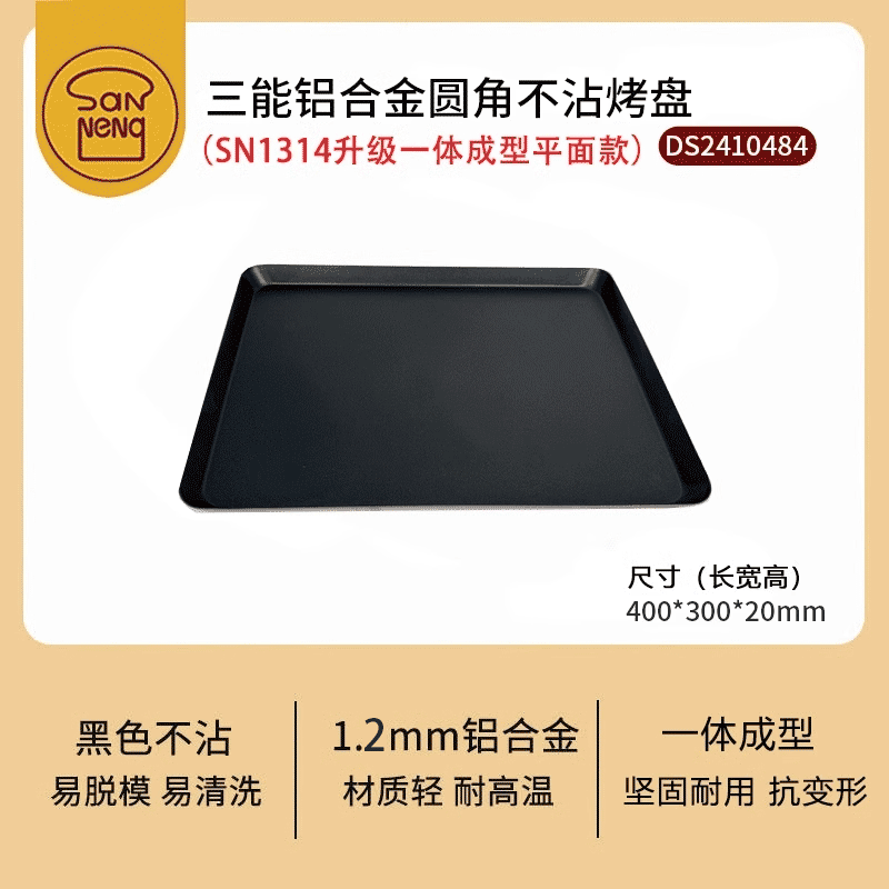 三能(SANNENG) 烘焙器具30*40CM长方形家用烤盘铝合金波纹不沾SN1314 升级款 一体平面不沾烤盘40*30*2cm