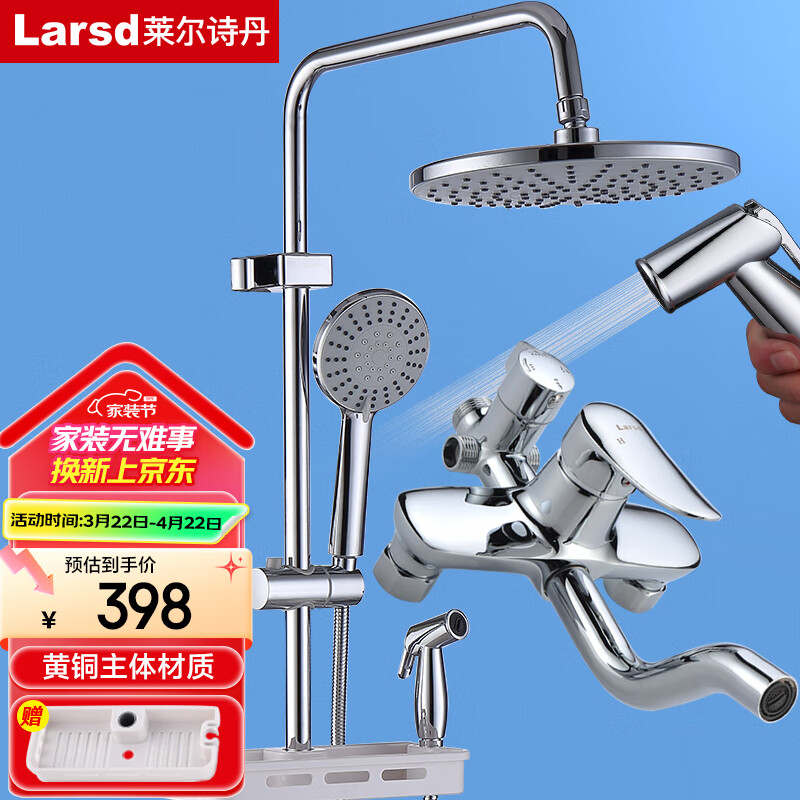 莱尔诗丹(Larsd)淋浴花洒套装带妇洗喷枪置物架 全铜龙头主体手持顶喷花洒H07