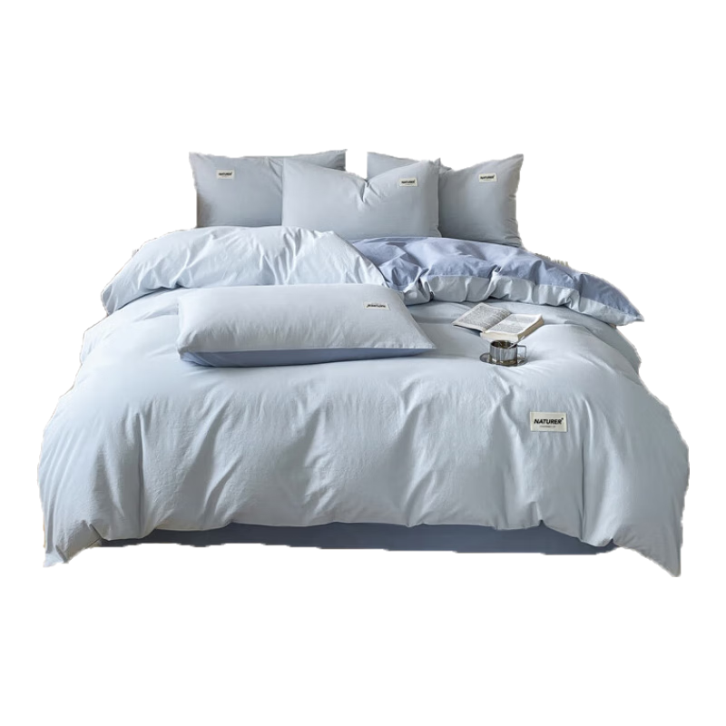 百亿补贴:无印良品a类四件套全棉纯棉2025新款床上用品裸睡床单被套床笠款三件套 天空蓝+海青【柔软亲肤 透气裸睡】 1.8m四件套 床单款 -被套200*230cm
