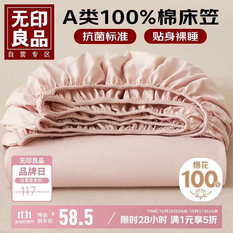 无印良品A类全棉床笠单件 纯棉床套罩床垫保护套全包床单180*200cm