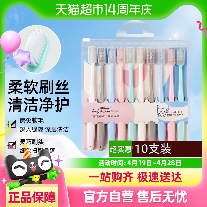 朗利洁精巧小头软毛牙刷出差旅行特惠家庭装清洁口腔10支带防尘套