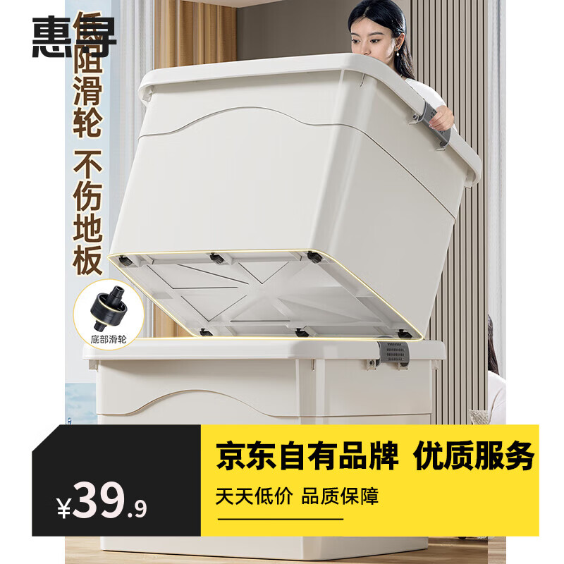 惠寻 京东自有品牌 收纳箱加厚加大防尘衣物玩具搬家储物箱车载后备箱 带滑轮1个装 55*37*30cm