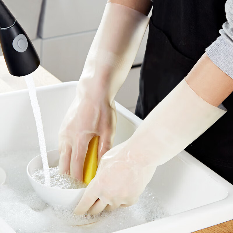 妙洁加长保暖乳胶手套 天然乳胶 1双 均码 长袖厚绒 家务厨房洗碗