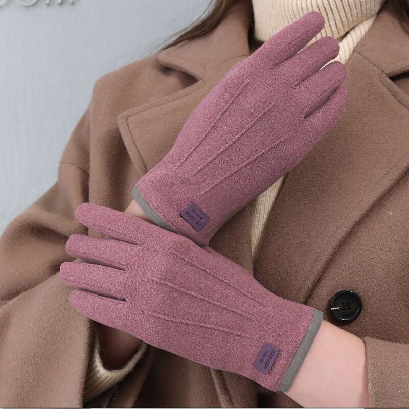达芬奇密码 冬季保暖可爱女生日系太阳花扣加绒分指手套带触屏 拼色粉紫