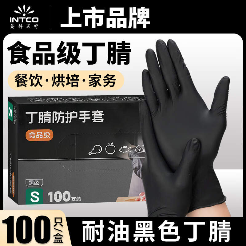 英科医疗(INTCO)一次性手套丁腈手套100只小码食品级家务清洁厨房酒店丁晴手套