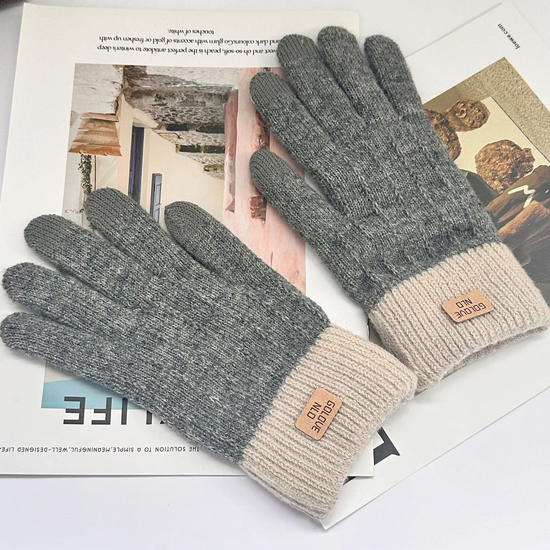 酇園韩国保暖触屏手套女士冬季针织加绒加厚学生骑行防风防寒纯色 灰色 均码