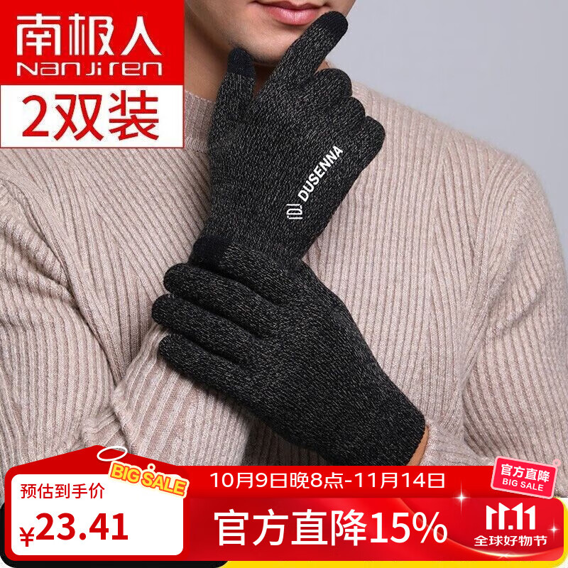 南极人毛线手套男女冬季保暖骑行手套滑雪手套触屏加厚全指半指防风手套