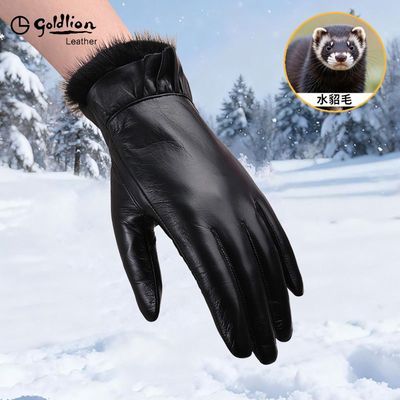 百亿补贴:金利来新款手套女冬季保暖加厚加绒全指触屏骑行羊皮女士手套