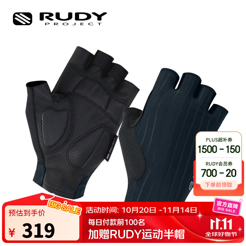 RUDY PROJECT骑行手套公路车短指半指缓震手套男女透气防滑耐磨星野骑行手套 深灰色 L