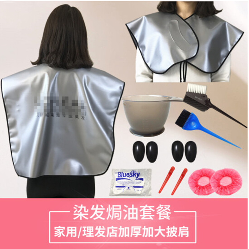睫蓓染发工具套装染发披肩焗油碗耳套刷子夹子浴帽手套10件套 加厚加大披肩套餐升级版