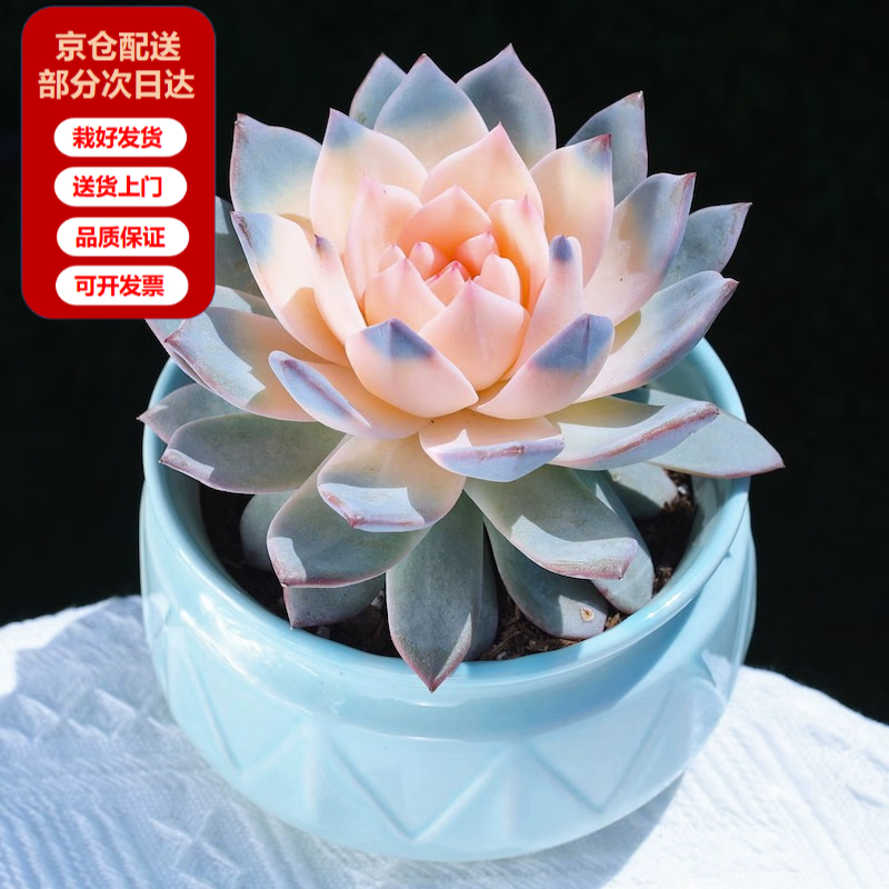 两腿跑粉色蓝鸟大颗多肉植物盆栽办公室内趣味美观肉肉绿植花卉新手套餐 粉心蓝鸟+几何蓝瓷盆-约13厘米