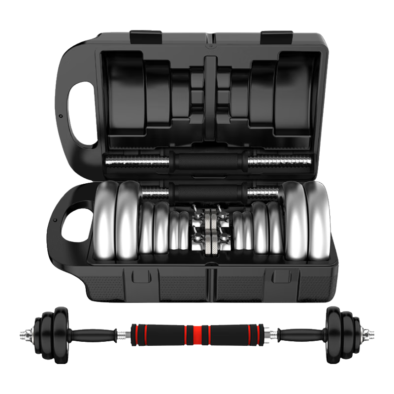 朗威电镀哑铃男杠铃可调节哑铃组合套装20公斤纯铁亚玲健身器材可拆卸 两只总重20公斤+防茧手套 +红套 10KG 起/标配+选配三(礼盒)