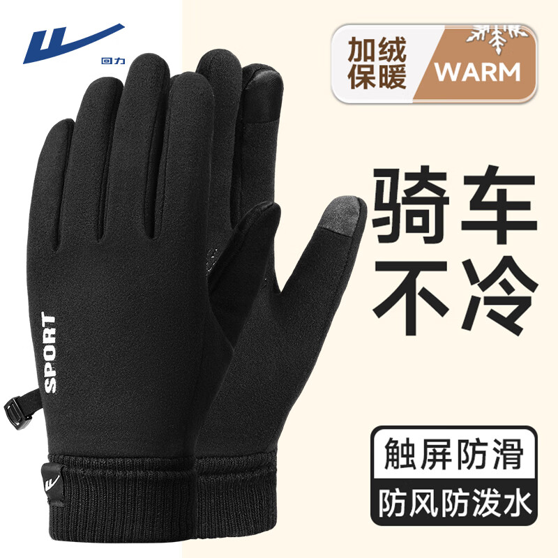百亿补贴:回力保暖手套冬季男德绒保暖手套防风寒冻骑行手套防泼水登山触屏手套