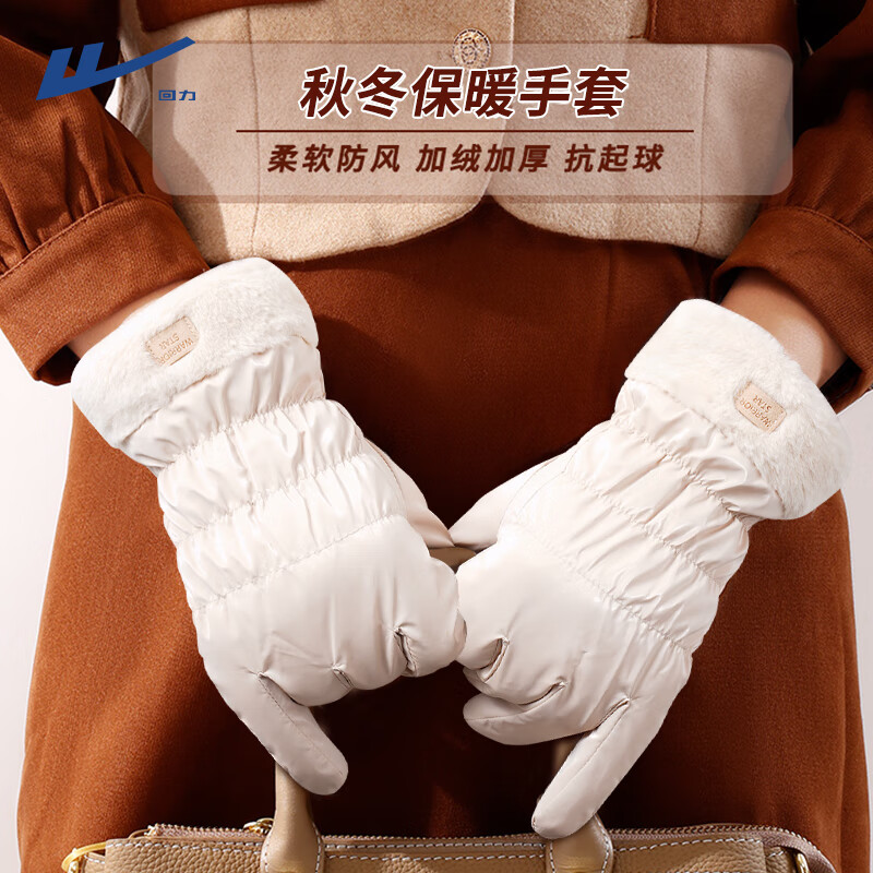 百亿补贴:回力保暖手套女冬季加绒加厚手套防风寒冻泼水手套护手腕户外骑行手套