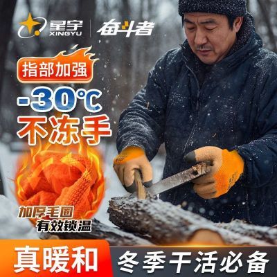 百亿补贴:星宇冬季劳保耐磨手套加厚保暖防寒毛圈加厚防滑工地发泡干活批发