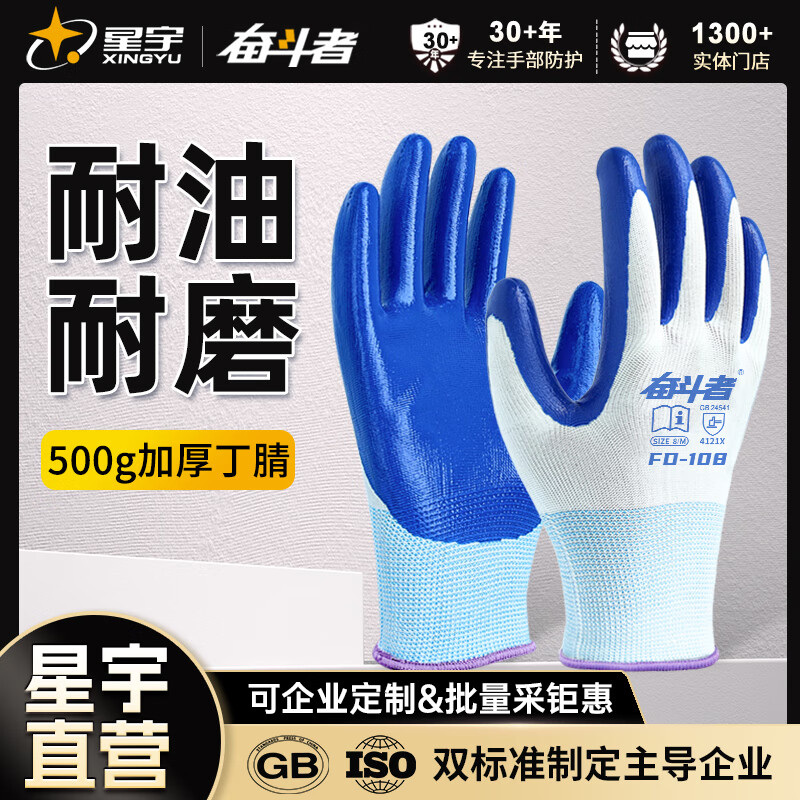 百亿补贴:星宇正品丁腈劳保手套耐磨耐油透气工地干活汽修物流批发机械五金
