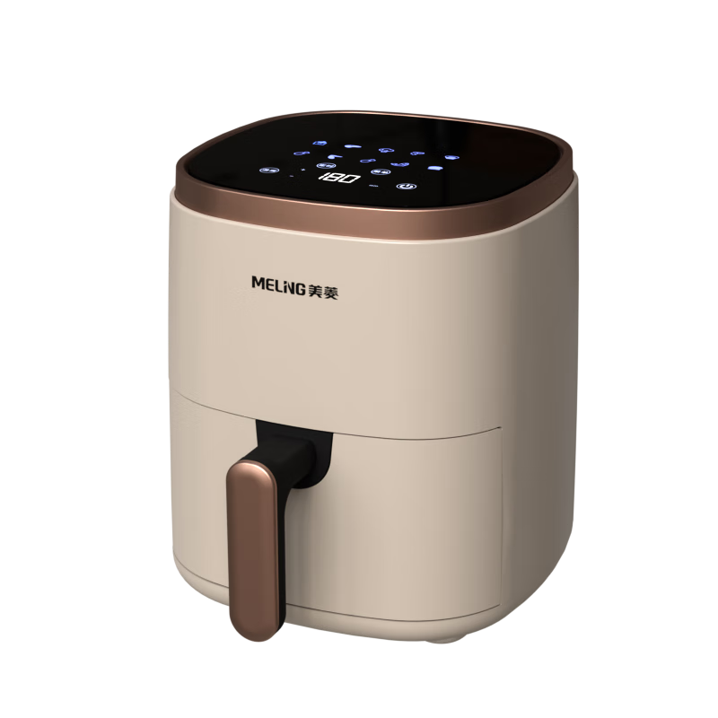 美菱(MeiLing)空气炸锅家用大容量 可视 不用翻面 大功率 全自动智能多功能电炸锅 无油低脂煎炸 【可视免翻面】双旋钮椰奶白金 6L