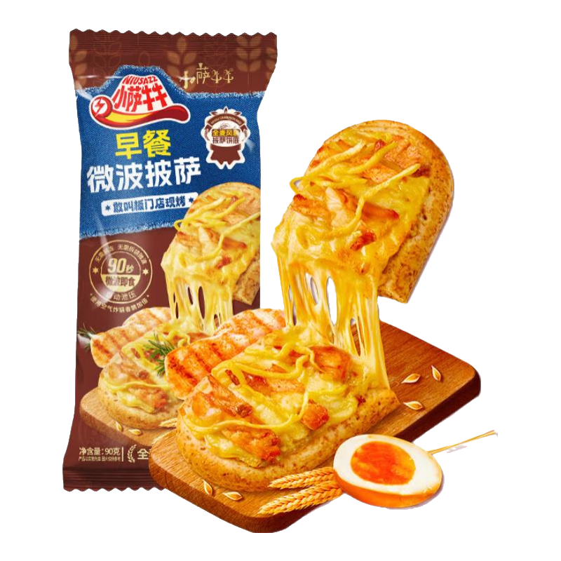 小萨牛牛 【5袋起售】单袋装披萨早餐 加热即食 空气炸锅半成品 烘培食材 【临期】全麦鸡胸肉蛋柳风味披萨90g*1袋