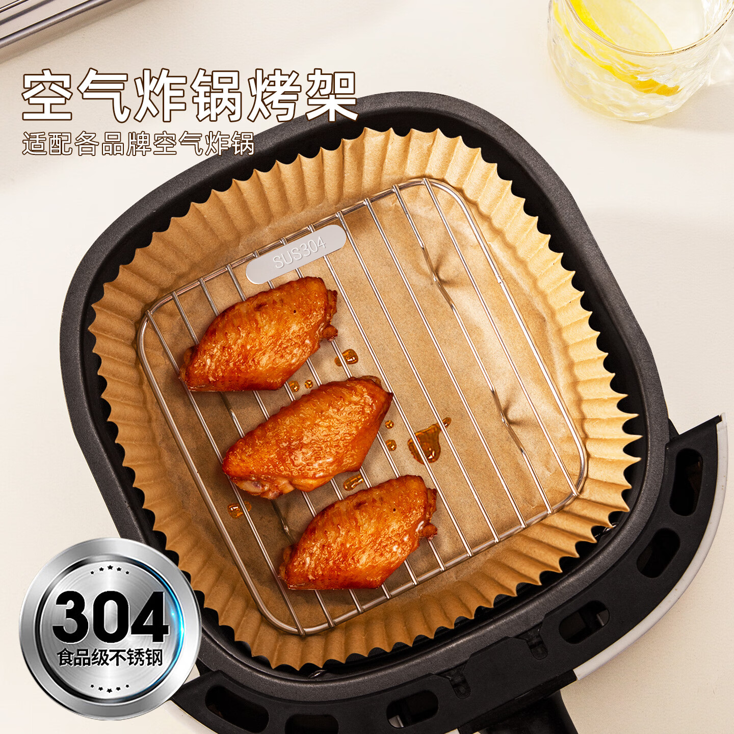 维艾(Newair)304不锈钢空气炸锅内专用的烧烤架烤肉烤盘分层沥油支架器皿方形 【304不锈钢烤架】中号 无规格
