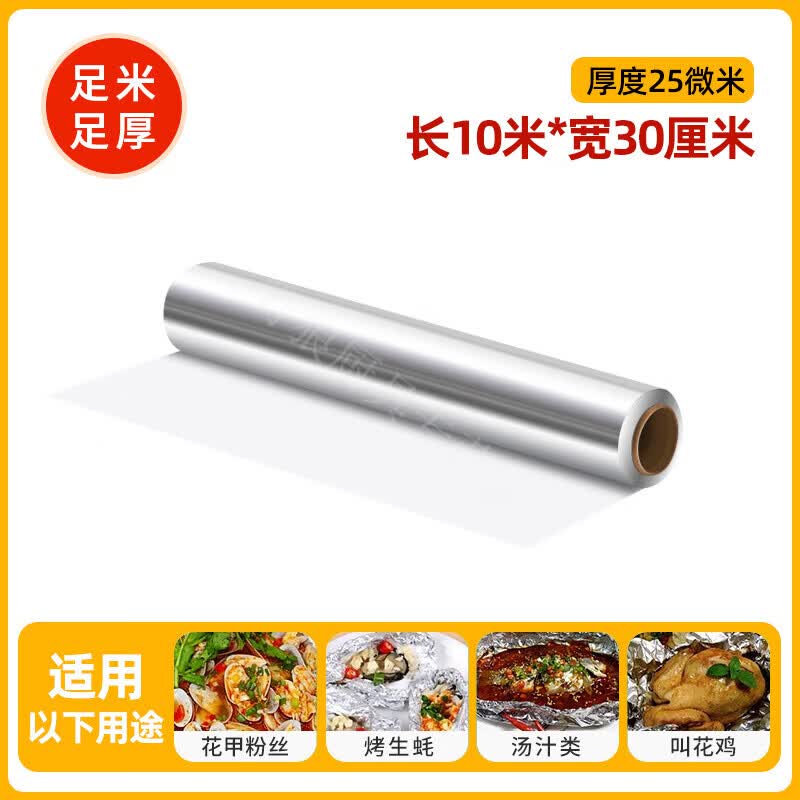 魔豆胜活商用锡纸卷加厚烧烤烘培食品级锡箔纸家用空气炸锅烤箱专用铝箔纸 10米【加厚款】厚25微米长10米宽