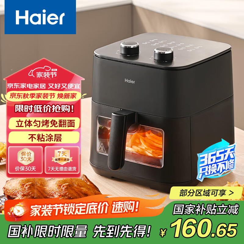 【政府补贴】海尔空气炸锅家用可视免翻面大容量电炸锅烹饪料理机