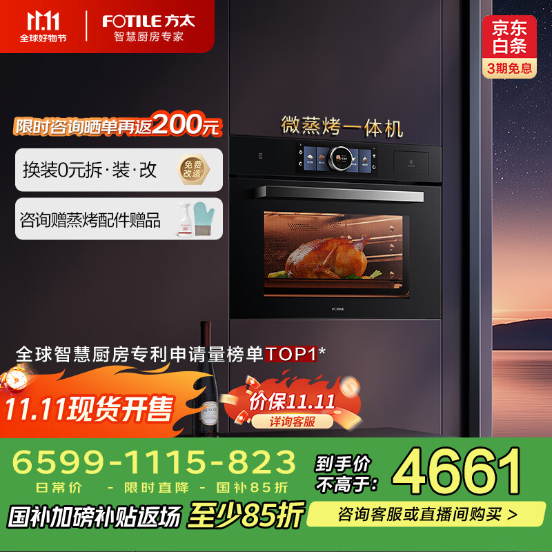 方太(FOTILE)国补 嵌入式蒸烤箱一体机家用 微蒸烤炖炸四合一 悬浮星空屏 智能蒸箱烤箱空气炸锅微波炉03-G2