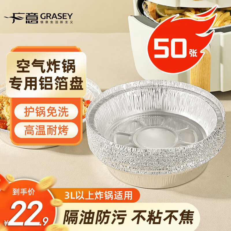 广意空气炸锅锡纸盘 空气炸锅专用纸锡纸碗铝箔烤盘19cm*50只GY8725