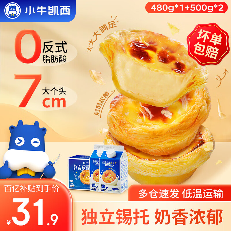 百亿补贴:小牛凯西 葡式蛋挞家用套装带锡纸半成品西式烘焙空气炸锅冷冻 蛋挞皮30个*1+蛋挞液500g*2
