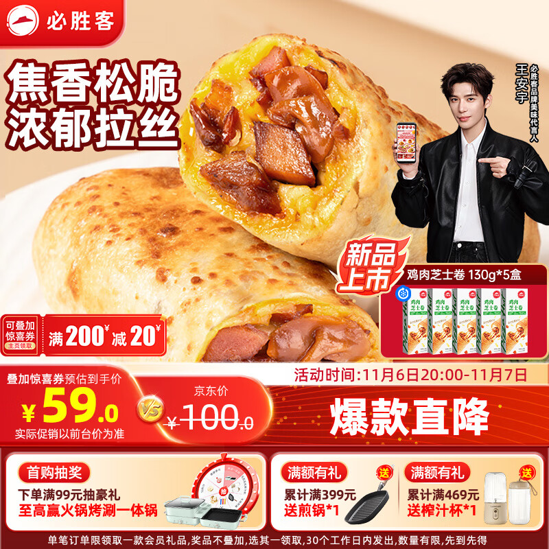 必胜客必胜优选鸡肉芝士卷130g*5盒 儿童早餐半成品速食 空气炸锅食材