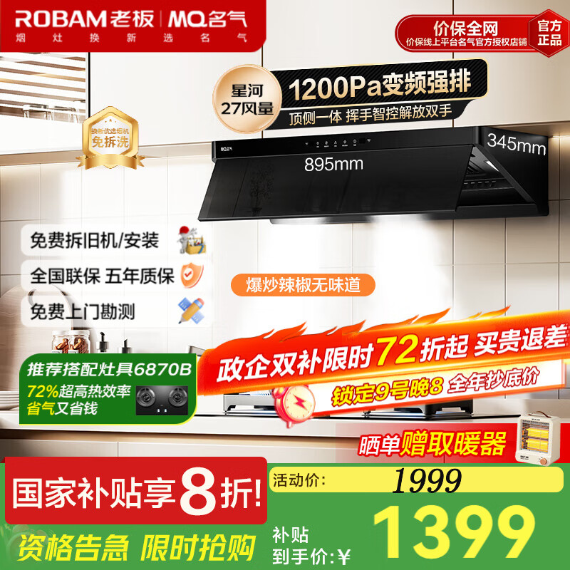 名气老板星河F10抽吸排油烟机灶具套装 超薄顶侧一体0缝真平嵌 27风量变频家用大吸力吸烟机 以旧换新 【国家补贴立减20%】旗舰单烟机