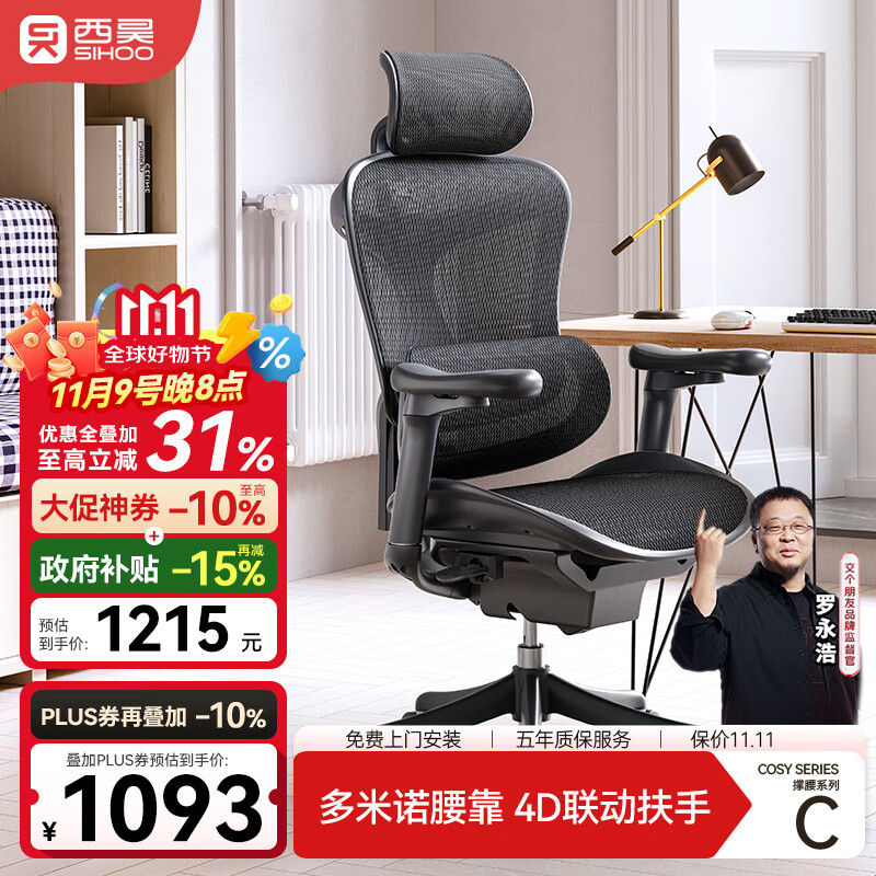 西昊C300/C100人体工学椅久坐舒服电脑椅办公椅子老板椅电竞椅午休椅 C100曜黑 +4D扶手