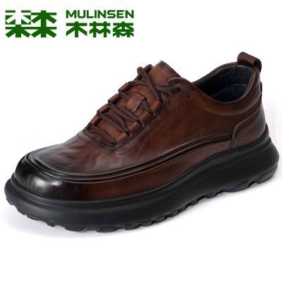 百亿补贴:木林森男鞋2025秋季新款牛皮商务运动鞋厚底英伦雅痞休闲皮鞋男士