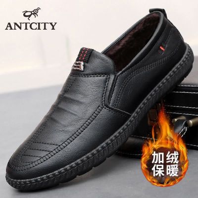 百亿补贴:蚂蚁城真软皮加绒保暖商务休闲皮鞋工作一脚蹬懒人鞋中老年男鞋