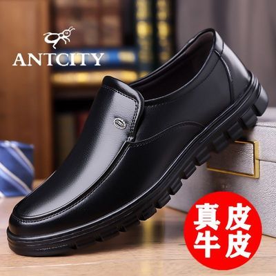 百亿补贴:蚂蚁城男士皮鞋新款真皮商务休闲软皮鞋中老年牛皮软底防滑爸爸鞋