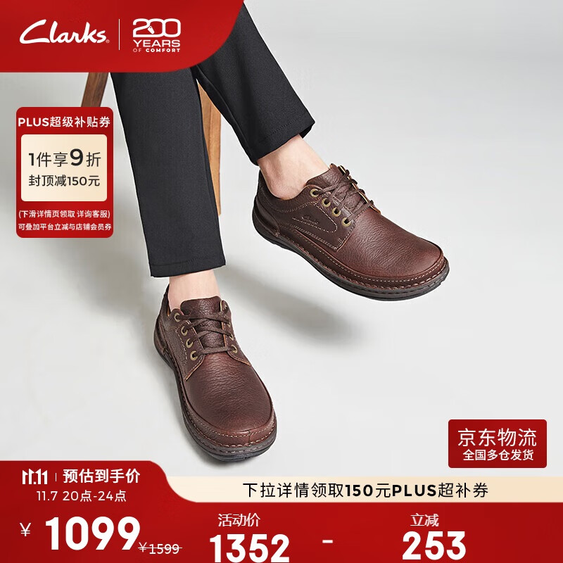 ClarksClarks其乐Nature Three男士皮鞋经典舒适透气商务休闲鞋平底男鞋