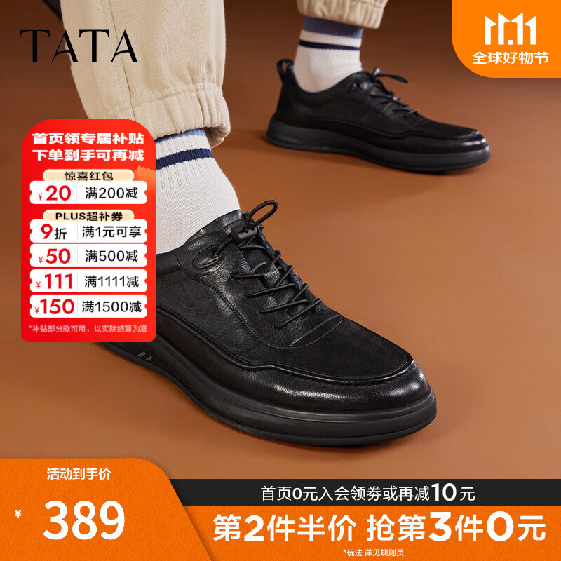 他她(TATA)运动皮鞋商务休闲软底鞋简约男鞋爸爸鞋商场同款VXQ01CM5 黑色 40