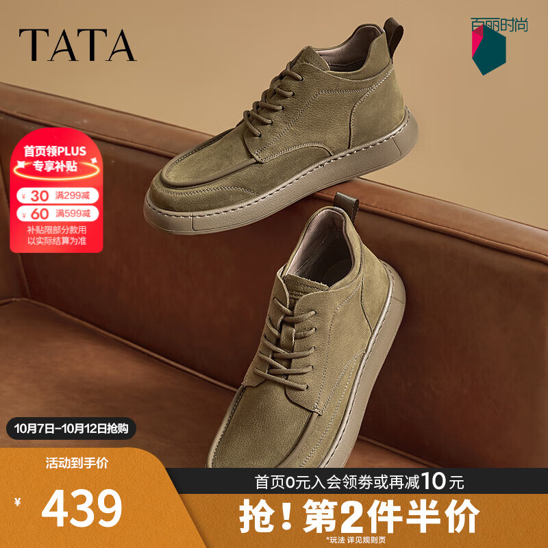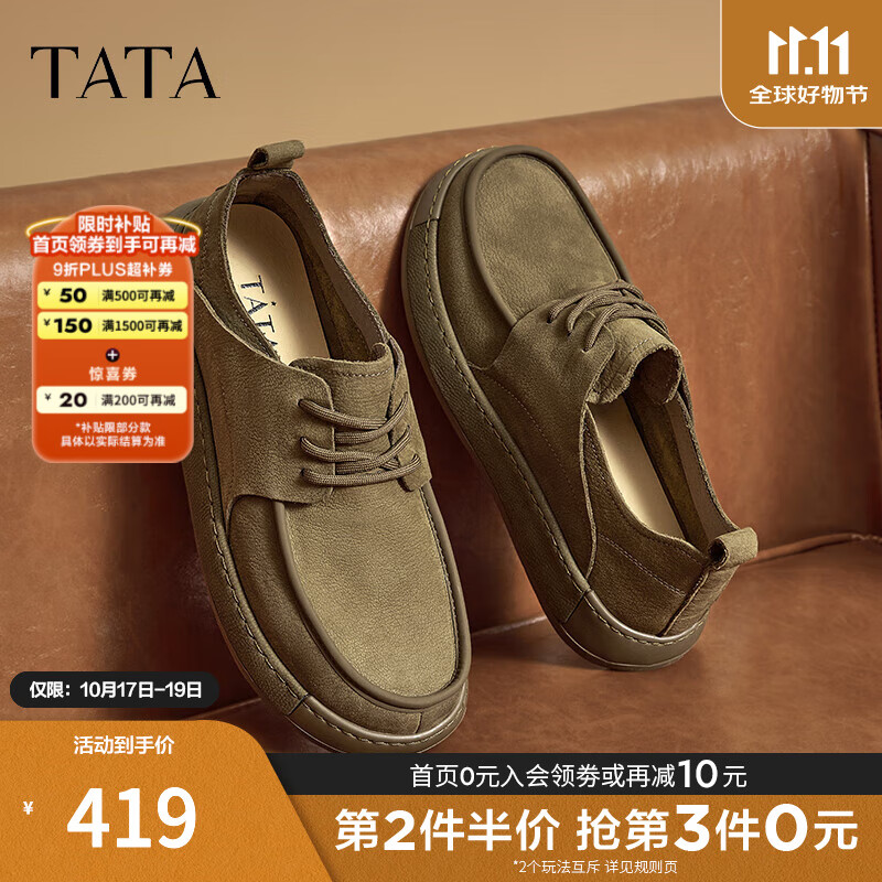 他她(TATA)牛皮厚底复古休闲板鞋男美式工装鞋商务皮鞋PYE01CM3 OCD01AM4卡其色 40