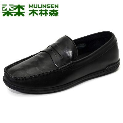 百亿补贴:木林森男鞋2025秋季新款胎牛皮革休闲商务皮鞋男士软皮软底豆豆鞋